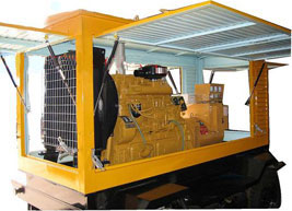 清水河柴油发电机组/移动柴油发电机组设计独具创新,机动性高、重心低、制动安全、制造精良、外形美观。 清水河拖车车架采用槽梁焊接成框架结构,节点选择合理、强度高、刚性好;同时装有钢板弹簧悬架结构;拖车采用高度可调节插销式牵引架,适用于各种高度牵引车;采用圆形钢管焊接直通式车轴,结构紧凑,安全可靠;车架四角设有机械式支撑装置,配备惯性行车制动、驻车制动和脱离应急制动,确保机组在各种状况下的安全;车架前端设有支撑轮,具备承受机组垂直载荷的功能的同时还具备导向功能;整车配备转向和刹车指示灯,同时装有尾灯标准插头